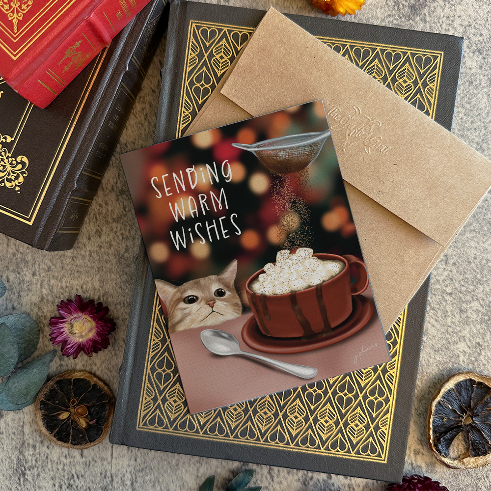 Warm Wishes Cocoa Kitty Card