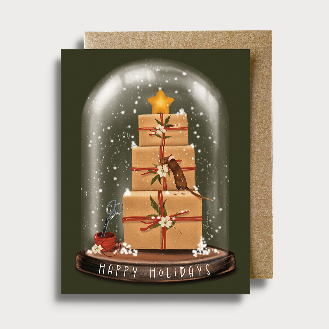 Add Happy Holidays Mouse Presents Globe Card to the cart
